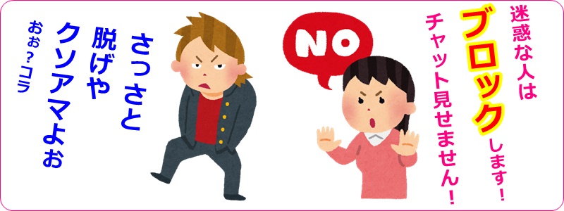 暴言を吐いたり他の視聴者さんとケンカをしたりするような人がチャット内にいると、全体の空気が悪くなってしまってエッチな雰囲気になりにくくなってしまうので、そういう迷惑な人はブロックをされてしまうケースが多いですね。
