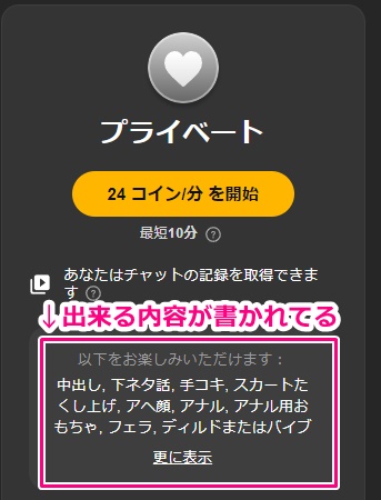 STRIPCHATは1分ごとに〇〇コインを消費する事で女の子と1対1のマンツーマンでチャット(プライベートチャット)が出来ます。