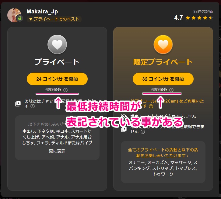 プライベートチャットが始まって5分以内に終了した場合であれば返金申請する事が出来ますし、女の子の中にはプライベートチャットの最低持続時間というものを設定している子がいるので、その時間を下回って終わってしまった場合にも返金してもらう事が可能です。