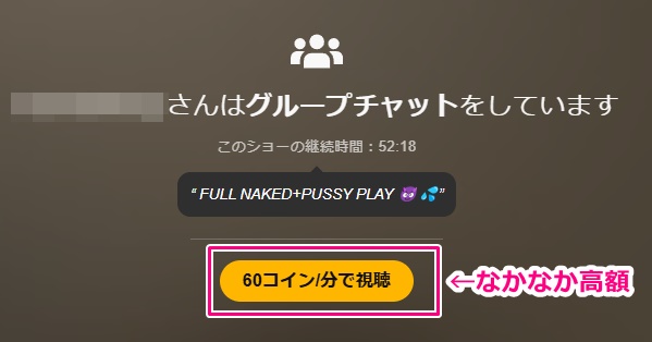 1分間で60コインも消費するグループチャットなんて1時間遊んだたら3600コイン、つまり5万円以上も消費してしまうわけです。