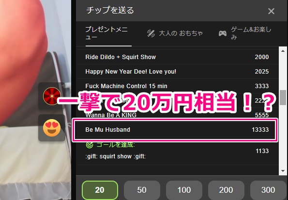 他にもプレゼントメニューやゲームなどをやる際にもコインが必要になりますが、そこでも目を疑うほどの高額料金にしている子もいたりします。