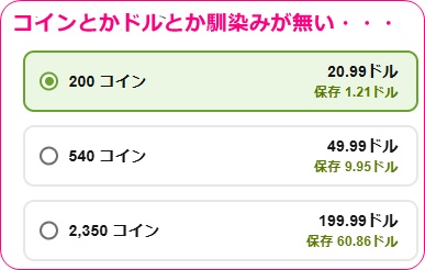 コインからドルへ変換してさらに円支払いにしないと計算できないので慣れるまではコインの価値が分かりづらいかと思いますので、最初の頃は慎重にコインを消費するように心がけた方が危険性は少ないかと思います。