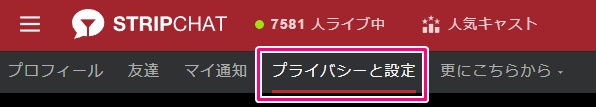 STRIPCHATで自分のプロフィールページから『プライバシーと設定』をクリックします。