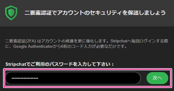 続いてSTRIPCHATのログイン時に使うパスワードを入力します。
