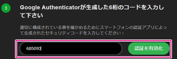 QRコードをスキャンするとGoogle Authenticatorが自動的に立ち上がり6桁のパスワードが表示されますので、STRIPCHATで入力をします。