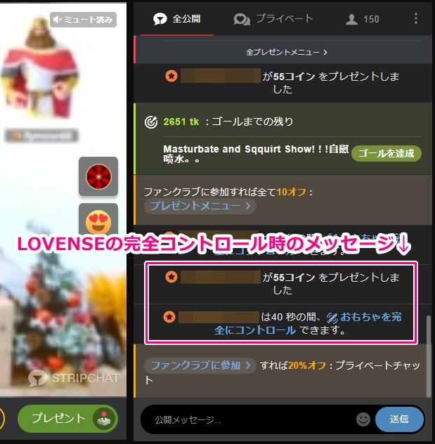 あと、STRIPCHATは基本的に女の子1人に対して視聴者は数百、数千人とたくさんいますので、他の視聴者がLOVENSEを発動させてもその映像を一緒に見る事が出来るのもありがたいですね。無理に自分だけ頑張る必要は無いんです。