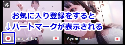 なので、日本人女性だけを見たいという場合は、日本人女性を見かけたらかたっぱしからお気にいり登録をしていくのが確実です。少なくとも可愛い女の子を見かけたら迷わずお気に入り登録しておきましょう。